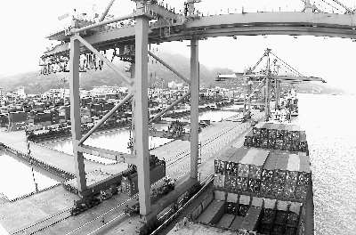 19日,一艘往返兩岸的萬噸級集裝箱貨輪平穩停靠在福州馬尾港。據福州邊檢站統計數據顯示,今年上半年,福州馬尾港出入的閩臺貨運直航集裝箱船舶共467艘次,比去年同期增長26%。記者 張永定 通訊員 王鵬 攝