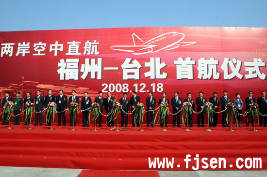 東南網(wǎng)12月18日訊 (記者 孫靖) 今天上午11:30,“兩岸空中直航福州-臺(tái)北首航儀式”在福州長(zhǎng)樂(lè)國(guó)際機(jī)場(chǎng)舉行,這標(biāo)志著州至臺(tái)灣空中客運(yùn)直航包機(jī)正式拉開(kāi)帷幕。今后從福州往返兩岸不用再經(jīng)第三地中轉(zhuǎn)。榕臺(tái)交流交往又一次實(shí)現(xiàn)了重大突破,兩岸“三通”從此翻開(kāi)嶄新的一頁(yè)。
