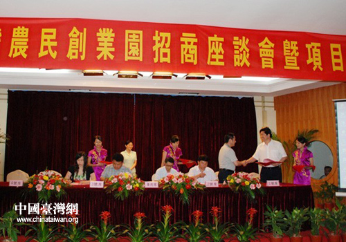 中國臺灣網7月1日廬江消息 日前,廬江縣召開安徽廬江臺灣農民創業園招商引資座談會,并舉行項目簽約儀式。廬江縣政協主席夏明生主持座談會。