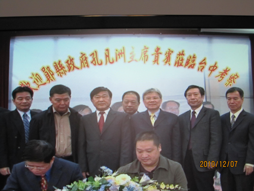 在臺期間,考察團(tuán)先后拜會(huì)了湖北同鄉(xiāng)會(huì)鄖縣籍臺胞詹家香、馬顯宗等先生、臺灣省糕餅商業(yè)同業(yè)公會(huì) 、實(shí)地考察了阿里山茶葉協(xié)會(huì)、臺灣愛之味股份有限公司、永全食品器具有限公司、臺灣糕餅食品加工有限公司、臺北石材加工工業(yè)總會(huì)等。在與這些企業(yè)負(fù)責(zé)人進(jìn)行了座談交流的同時(shí),鄖縣副縣長張毛字與臺灣豐榮食品有限公司簽訂了1億元的休閑食品加工協(xié)議、同臺北石材加工工業(yè)總會(huì)簽訂了2000萬元的大理石深加工投資協(xié)議,同嘉義縣木瓜酵素企業(yè)達(dá)成了協(xié)議性投資商榷,同時(shí)邀請?jiān)摴径麻L吳先生擇日來湖北鄖縣考察木瓜深加工投資項(xiàng)目。(胡德鮮)