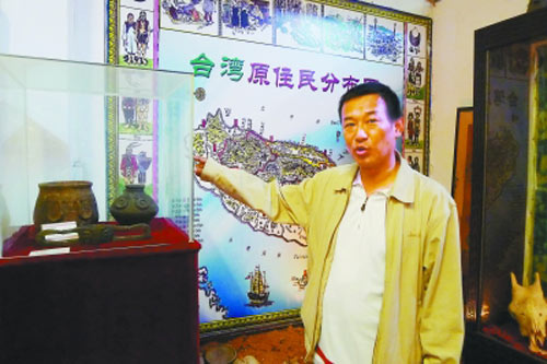 在鼓浪嶼晃巖路上,有一座“百年臺灣”館。近萬件的文物讓游客仿佛進(jìn)入臺灣歷史的時空隧道。這家博物館的主人就是來自臺灣的洪明章(如圖)。創(chuàng)辦之初,連他自己也沒想到,“百年臺灣”竟然成為大陸第一座臺灣人創(chuàng)辦的私人博物館。