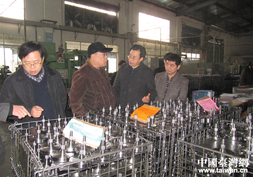 省臺辦副主任張軍(右二)在蓬安縣南充隆固機(jī)械工業(yè)有限公司調(diào)研。