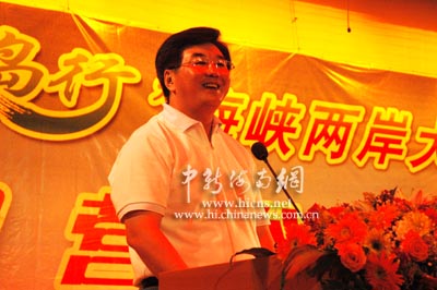 2006年7月,在2006“寶島行”海峽兩岸大學(xué)生夏令營(yíng)開(kāi)營(yíng)儀式上,海南省臺(tái)辦主任徐剛寄望兩島青年學(xué)子共創(chuàng)兩岸和平、和諧、共贏的未來(lái)。(圖片來(lái)源:中國(guó)新聞網(wǎng))