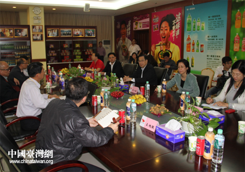 陳明德常委在統(tǒng)一公司與負(fù)責(zé)人座談。(圖片來源:廣州市臺(tái)辦)