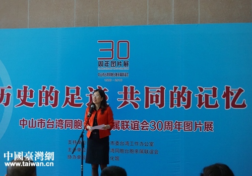 中國臺灣網10月18日中山訊 10月12日,中山市臺灣同胞臺胞親屬聯誼會(簡稱中山市臺聯)成立30周年圖片展在中山市文化館開幕。廣東省臺聯會長顏珂,市委常委、統戰部部長梁麗嫻,市政府副秘書長鄒鑫,市委臺辦主任林慶和等出席了開幕式,市委對臺工作領導小組成員,市直有關單位負責人,各鎮區統僑辦主任以及市臺聯理事、顧問,臺北市中山同鄉會鄉親等150多人參加了活動。梁麗嫻在講話中表示,中山市臺聯成立以來,本著“愛國、團結、聯誼、發展”的宗旨,努力團結維系臺胞臺屬,密切與臺灣島內中山社團、鄉親交流往來,厚植鄉情和同胞情誼,宣傳推介中山,積極參與經濟社會建設,獲得了社會各界的認可和贊譽,成為中山對臺工作的一支重要力量。梁麗嫻指出,中山市臺聯不斷發展壯大,社會影響力不斷提高,這是廣大臺胞臺屬共同努力的結果。在新的形勢下,中山市臺聯的使命更加光榮,責任更加重大,舞臺也更加寬廣,在推動兩岸關系和平發展、促進祖國和平統一事業中要貢獻更多力量。