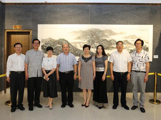 合影留念。(右四:市政協(xié)張麗萍主席,右二:市政協(xié)李衍楠副主席,左四:市政協(xié)何偉強(qiáng)副主席,左三:市政協(xié)何安瓊秘書長,左二:學(xué)習(xí)文史鄒國忠主任,左一:市臺(tái)辦謝昉柱主任,右一:市美術(shù)館葉國強(qiáng)館長)