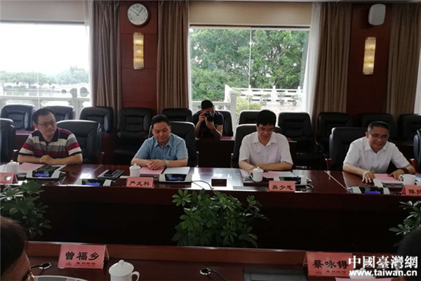 惠州市委臺(tái)辦、市衛(wèi)計(jì)局負(fù)責(zé)人與考察團(tuán)一行座談交流。(圖片來(lái)源:惠州市臺(tái)辦經(jīng)濟(jì)聯(lián)絡(luò)科)