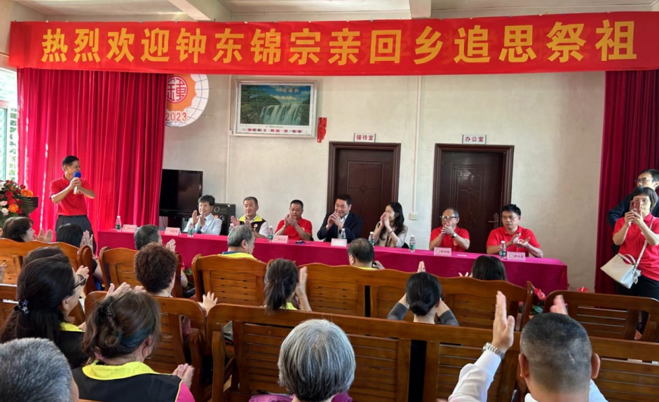 歡迎會上,臺灣東錦宗親贈送臺灣區鍾姓宗親總會恭印的《鐘姓大宗譜》給龜形宗親,龜形永志會長贈送《蕉嶺鐘姓史話》志書給東錦宗親,加深了解兩岸宗族宗親更進一步加深兩岸同根同脈宗族脈系的聯誼情。歡迎會上永志會長接受臺灣鍾姓宗親祭祖團敬贈的“祥光福地,恩澤千秋”的錦旗,接著徐溪龜形永志會長回贈東錦宗親寫有:“情系桑梓彰厚愛,祖德不忘顯真情”的錦旗。