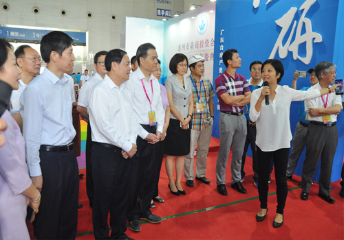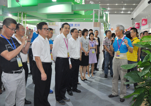 省臺辦副主任方濤(左二)、兩岸企業家峰會秘書長陳瑞隆(左三)、惠州市長麥教猛(左四)參觀臺博會