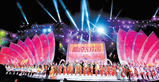 在白云國際會議中心舉辦的跨年度晚會宣告了廣州亞運年的到來。 記者海國攝