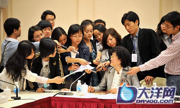 為了能及時采訪到新聞,他們有的長時間站立在喇叭前錄音,只是為了能錄到最清晰的聲音;文字記者總是沖在第一線向代表們提問,然后蜂擁到電腦前寫稿發稿;攝影記者們則背著重重的相機奔波在各個場館內拍攝采訪。作為他們中的一員,我用鏡頭捕捉下記者們辛勤忙碌的身影和充滿趣味的采訪工作瞬間。