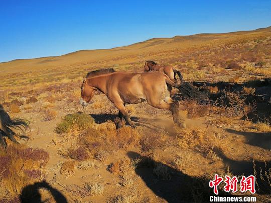 這些野馬的祖先們曾經生活在準噶爾盆地這片廣袤的干旱荒漠草原地帶,野性十足。然而在上世紀70年代,新疆普氏野馬滅絕。如今世界上所有的普氏野馬,都是100多年前流落歐洲的28匹普氏野馬的后代。野放后,這些普氏野馬就像美國作家杰克·倫敦在《野性的呼喚》中的所寫的狗“巴克”一樣,順應自身野性的呼喚,過著原始動物的生活。