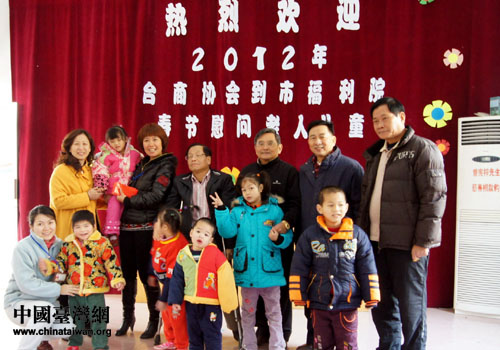 市臺辦工作人員和臺商們來到孩子們身邊,親切地詢問孩子們的生活情況和老師、保育員的工作情況,詳細察看了康復區、作品展示區,觀看了孩子們自編自演的表演節目,還給每個孩子、老人、老師和保育員發放節日慰問金。