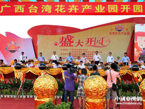 臺(tái)灣花卉產(chǎn)業(yè)園項(xiàng)目是2010年7月4日廣西在臺(tái)灣舉辦“兩岸產(chǎn)業(yè)高峰會(huì)議—2010年桂臺(tái)經(jīng)貿(mào)文化合作論壇”期間簽約的示范項(xiàng)目,同時(shí)也是廣西“十二五”花卉產(chǎn)業(yè)重點(diǎn)建設(shè)項(xiàng)目,2011年3月開(kāi)工建設(shè),總投資10.71億元,主要引入臺(tái)灣彰化縣田尾鄉(xiāng)“公路花園”模式,面向臺(tái)灣花農(nóng)、花卉企業(yè)招商引資,在綠城建設(shè)集花卉生產(chǎn)、休閑旅游、觀光度假為一體的花卉產(chǎn)業(yè)園。花團(tuán)錦簇、五彩繽紛的這一花卉產(chǎn)業(yè)園隆重開(kāi)園迎客,為2012年桂臺(tái)經(jīng)貿(mào)文化合作論壇開(kāi)了個(gè)喜慶的“好彩”。