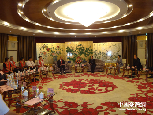 廣西梧州市委常委、常務副市長李新元(右三)等市領導會見臺灣花蓮縣新城鄉鄉長錢自立(右四)一行。(圖片來源:梧州市臺辦)