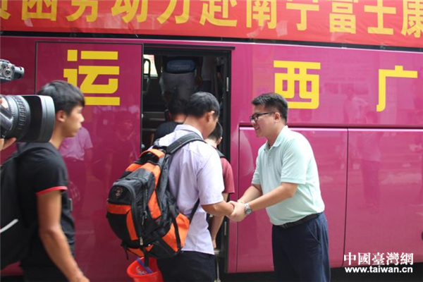 中國(guó)臺(tái)灣網(wǎng)7月2日橫縣訊 近日,廣西南寧市橫縣舉辦2018年貧困勞動(dòng)力專場(chǎng)招聘會(huì)暨首批貧困勞動(dòng)力赴南寧富士康務(wù)工發(fā)車儀式,來(lái)自全縣17個(gè)鄉(xiāng)鎮(zhèn)25名貧困勞動(dòng)力乘上大巴前往南寧富士康公司務(wù)工,開啟他們的脫貧致富之路。