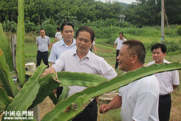 梧州市委書記全桂壽到岑溪市三堡鎮上海欣隆信息有限公司火龍果種植基地調研(圖片來源:廣西梧州岑溪市臺辦)