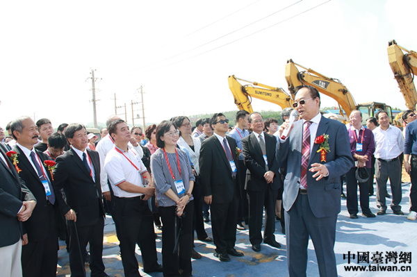 項(xiàng)目動(dòng)工儀式后,全國(guó)臺(tái)企聯(lián)榮譽(yù)會(huì)長(zhǎng)張漢文向參加儀式嘉賓介紹項(xiàng)目情況。(圖片來(lái)源:廣西臺(tái)辦)