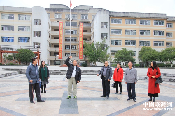 臺胞伍先生在參觀南丹縣高中,大聲為家鄉發展喝彩。(圖片來源:廣西河池市南丹縣臺辦)