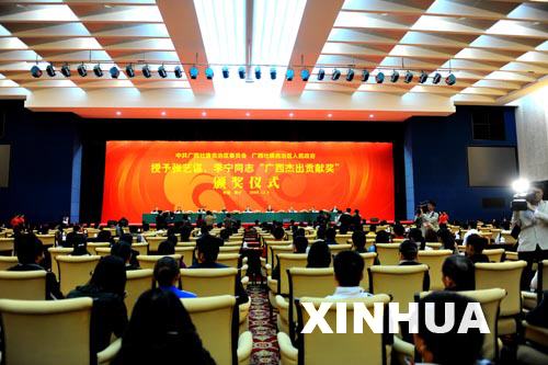 在頒獎儀式上,廣西壯族自治區黨委書記郭聲琨將"廣西杰出貢獻獎"榮譽證書、獎牌頒給中國著名電影導演張藝謀和"體操王子"李寧。這是廣西第一次將這項特殊的榮譽頒發給文化、體育界人士,主要是為表彰張藝謀在2008北京奧運會、殘奧會期間的貢獻,表彰李寧為體育事業和北京奧運會作出的貢獻,以及兩人為廣西發展作出的貢獻。