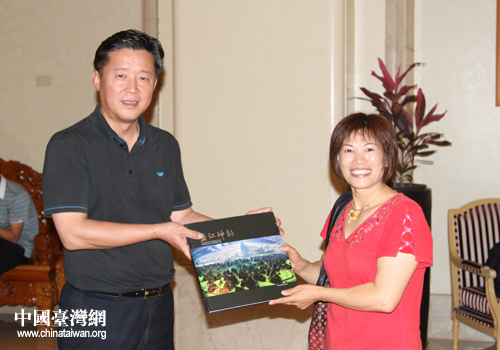 考察團一行為何麗贈送黔西南畫冊《盤江神韻》。(圖片來源:黔西南州臺辦)