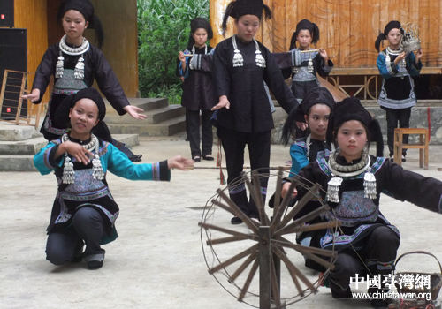 水族織布舞讓臺(tái)灣大學(xué)生感到好奇。(黔南州臺(tái)辦 張榮周 攝)
