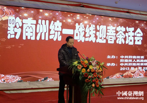 中國臺(tái)灣網(wǎng)1月28日都勻消息 日前,黔南州委、州人民政府在都勻市舉行黔南州統(tǒng)一戰(zhàn)線迎春茶話會(huì)。州委副書記、州人民政府州長向紅瓊、州人大常委會(huì)主任羅毅、州政協(xié)主席高金林、州副書記吳勝華等州領(lǐng)導(dǎo)出席,10名臺(tái)胞臺(tái)商臺(tái)屬代表和150多名各族各界代表一同參加。
