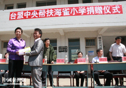 中國臺灣網5月30日赫章消息 日前,全國人大常委、臺盟中央副主席蘇輝一行5人到貴州赫章縣河鎮鄉慰問海雀小學師生,向他們捐贈DVD機4臺、小學三至六年級英語光碟4套、圖書324冊,以及毛衣50件,總計價值3萬元,并帶去了臺盟中央對海雀小學學生“六一”兒童節的問候。(中國臺灣網畢節市臺辦通訊員 蔡燕)