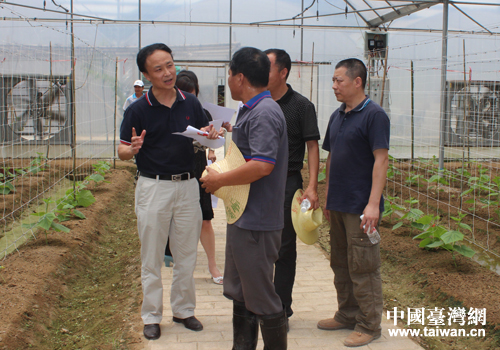 調(diào)研組深入到示范園區(qū)大棚實(shí)地考察引進(jìn)的新型農(nóng)作物生長(zhǎng)情況,認(rèn)真聽(tīng)取企業(yè)負(fù)責(zé)人對(duì)示范園的介紹,了解了園區(qū)基礎(chǔ)設(shè)施的完成情況,并與示范園區(qū)臺(tái)灣農(nóng)業(yè)技術(shù)人員親切交談,詢(xún)問(wèn)他們?cè)趧P里的工作、生活情況,鼓勵(lì)他們?yōu)楫?dāng)?shù)氐目萍嫁r(nóng)業(yè)發(fā)展多做貢獻(xiàn)。