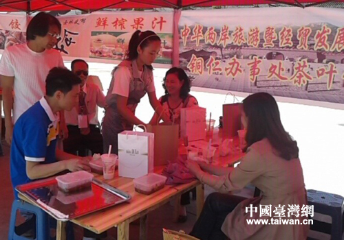 游客在展銷會上品嘗臺灣特色小吃。(圖片來源:銅仁市臺辦)