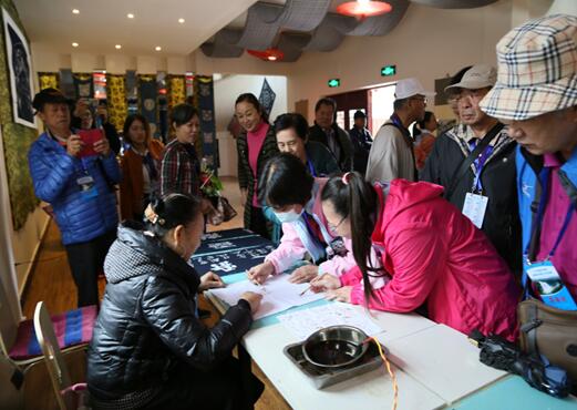 交流團到安順市開發區星光社區服務中心交流,實地參觀星光社區的科普體驗館、自愿者服務站、禁毒教育基地和綜合文化服務中心等基礎設施建設,同社區負責人深入交流,了解基層社區日常管理運作。交流團受到正在排練的藝術合唱團的熱烈歡迎,現場為交流團獻上苗家古老動聽的《后山苗音》,展示了安順苗族別具一格的文化魅力。交流團到三合苗寨參訪苗寨的美麗鄉村建設,考察苗寨依托苗族文化資源,按照苗族建筑特色,將苗寨內所有基礎設施融入蠟染元素進行設計改造突出苗寨文化,實現了民族文化保護與“美麗鄉村”建設相結合。臺灣同胞走進三合苗寨的蒙多彩苗族蠟染文化傳承基地,感受神奇蠟染技藝,動手體驗蠟染畫作,捕捉現代工筆畫與蠟染藝術相碰撞的火花,沉浸在苗族農耕文化豐富多彩的民族風情中。