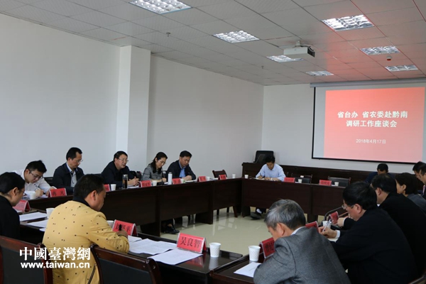 調研組一行分別召開座談會,聽取黔南州、黔東南州政府、州直有關部門和縣區在地涉農臺資企業發展、服務臺商臺企以及貫徹中央臺辦“31條措施”落地的情況匯報。結合兩地的現有農業園區,本地農業發展規模、優勢、特色,當地現代山地高效特色農業發展規劃以及支持鼓勵現代農業發展的政策措施等內容,與會人員共同探討設立“黔臺農業合作示范區”的可行性。黔南州副州長黎燕萍、黔東南州副州長吳坦參加座談并建言推動“黔臺農業合作示范區”落地本州。