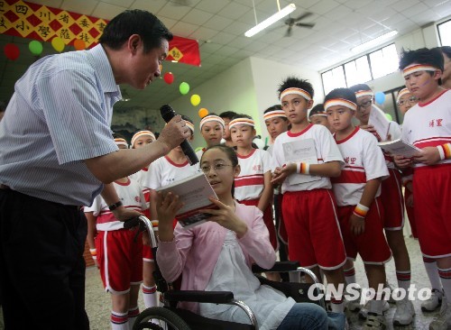 5月26日,正在臺灣參加“天府四川寶島行”活動的中共四川省委書記劉奇葆一行來到臺灣“9·21”地震災區埔里小學參觀考察。當來自汶川地震災區的“芭蕾女孩”李月將她在震后所寫的書《我心永舞》贈送給埔里師生時,劉奇葆靜靜來到李月身邊,與李月一起將書送給埔里小學圖書館后,親自推著輪椅將李月送下舞臺。
