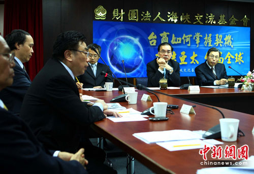 6月2日,臺灣海峽交流基金在臺北市召開由大陸臺商代表參加的座談會,代表們就進(jìn)一步密切兩岸經(jīng)貿(mào)合作、商簽兩岸經(jīng)濟(jì)合作框架協(xié)議(ECFA)等問題各抒己見,臺灣有關(guān)部門相關(guān)官員出席了會議。中新社發(fā) 宋吉河 攝