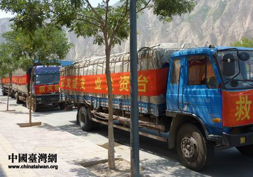 在甘肅省臺辦經濟聯絡處處長劉國保帶領下,由4輛大卡車組成的車隊裝載著68噸救災物資運往災區。一路上風餐露宿、晝夜兼程,克服大雨、泥石流等惡劣情況,于11日下午順利將救災物資送達兩河口救災物資接收點,為災區人民獻出自己的力量。(中國臺灣網、甘肅省臺辦聯合報道)