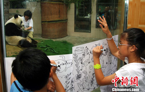 10月10日,福州熊貓世界迎來了來自臺灣臺南、南投等地的12位小朋友,他們很高興的現場畫起了“巴斯”當日,來自兩岸的小朋友、著名畫家在福州熊貓世界齊繪可愛的熊貓。