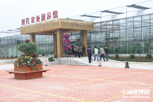 采訪團記者興致勃勃地走進現代農業展示館。(中國臺灣網 王君飛 攝)