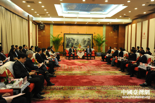 湖南省委書(shū)記周強(qiáng)、海協(xié)會(huì)會(huì)長(zhǎng)陳云林會(huì)見(jiàn);鶗(huì)董事長(zhǎng)江丙坤及;鶗(huì)媒體參訪團(tuán)一行。(湖南省臺(tái)辦 王敏杰 攝)
