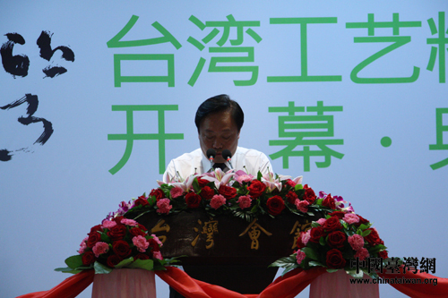 全國政協副主席張克輝、全國臺聯會長梁國揚,全國人大華僑委副主任李祖沛、全國政協港澳臺僑委副主任樓志豪、臺盟中央副主席黃志賢、國臺辦主任助理龍明彪、中國工藝美術協會理事長周鄭生、中華文化聯誼會副秘書長蕭夏勇、臺灣工藝研究發展中心主任蔡湘等為開幕式剪彩。全國臺聯會長梁國揚,中國工藝美術協會理事長周鄭生,臺灣工藝研究發展中心主任蔡湘分別致辭。