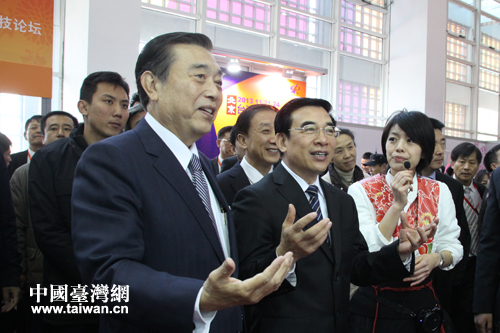 2013北京臺灣名品博覽會在北京全國農業展覽館新館開幕,圖為北京市市長王安順與臺灣貿易中心董事長王志剛參觀展覽。(中國臺灣網 郭慶娜 攝)