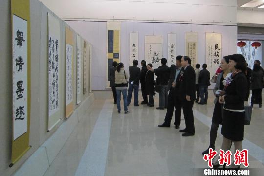 書畫展上,兩岸書畫名家揮毫潑墨,演繹丹青,書寫兩岸“五緣”情結。臺灣書法家表示,以書畫藝術為媒介,以展會為平臺,通過最具中華文化特質、文化內涵的書畫藝術的傳播和張揚,對于加強兩岸青年對中華民族優秀文化的認同感大有裨益。