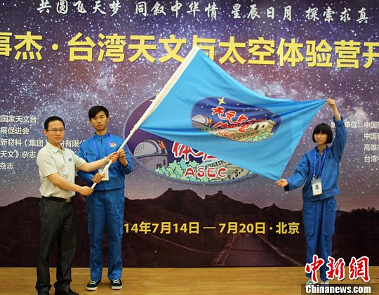 7月15日,“2014年杰事杰·臺灣中學生天文與太空體驗營”在北京開營。24位來自臺灣的大中學生和15位大陸大中學生將親身體驗航天員的訓練項目、品嘗航天食品。