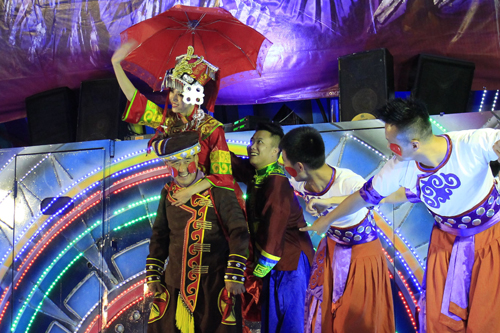 高雄市民吳金對上臺參與了《峨眉俠客》表演,蒙著眼體驗了一把“小李飛刀”。他說,他其實一點都不緊張,因為絕對相信這些“俠客”們的功夫,體驗了下來更加覺得,今晚的表演真的很贊!臺灣市民張榮源則當了一次“彝族新郎”,參與到表現彝族婚嫁風俗的舞蹈表演《喜背新娘》中。穿上彝族服飾,張榮源在臺上表演得有模有樣。他說,他從來沒去過四川,也是第一次看到這樣的表演,所以看到可以參與進去,就立馬舉手要參加。通過今天的表演對四川產生了很大的興趣,希望有機會可以去到四川親眼看看。