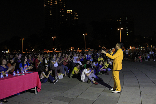表演在高雄市文化中心廣場舉行。表演開始前,慕名前來觀看表演的人們已經把廣場圍了個水泄不通。隨著表演進行,越來越多的人們圍了過來,不僅現場準備的座位座無虛席,連地上都坐滿了人。據不完全統計,當晚到場的觀眾達一千多人。