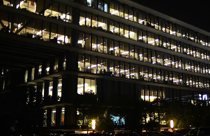 自從一年一度的電商狂歡節(jié)“雙11”開(kāi)始,各路商家與買(mǎi)家紛紛發(fā)力提前備戰(zhàn)。為搶奪客源,各大電商平臺(tái)開(kāi)啟“預(yù)售”模式。杭州文一西路的阿里巴巴西溪園區(qū),從一周前就開(kāi)始徹夜燈火通明。有加班“狂人”甚至把帳篷搭到了辦公區(qū)里,累了,躺下就睡。攝影:晴盼