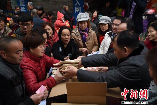 陳靖姑故居特別訂制了一批平安餅,分贈給參加第九屆閩臺陳靖姑民俗文化旅游節(jié)動儀式的市民。 林宇翔 攝