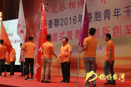 為夏令營(yíng)代表授旗(你好臺(tái)灣網(wǎng) 圖 記者 穆亮龍 攝)