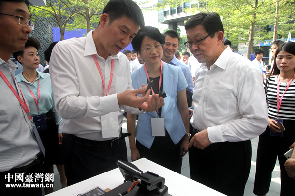 當天,海協會會長陳德銘等有關領導參觀了全國海峽兩岸青年創業基地聯展。此次成果聯展由各地授牌的國家級海峽兩岸青創基地及示范點組成,充分體現創客活動的風貌,匯集兩岸各地知名創客、創客空間及各類創客服務機構等,以開源創新、綠色農業、智能建筑、大健康、創意數字化制造為亮點,分享兩岸最新創意、創新作品。