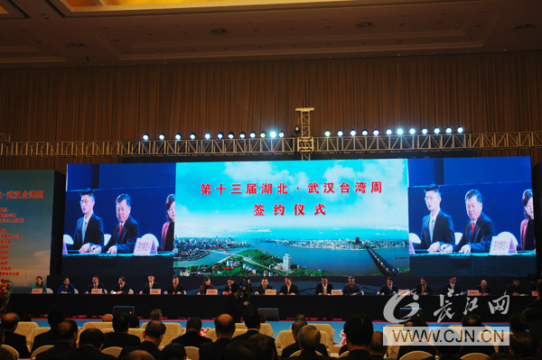 長江網訊(記者 畢婷 通訊員 劉宇)11月15日上午,第十三屆湖北·武漢臺灣周項正式開幕,在兩岸各界嘉賓的共同見證下,18個臺資項目現場簽約。中央臺辦、國臺辦主任張志軍,省委書記蔣超良,代省長王曉東等省領導以及出席臺灣周的臺灣重要工商團體和企業家等兩岸嘉賓近千人出席。