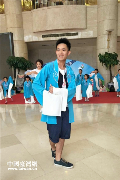 臺(tái)灣青年穿上京劇服飾感受京劇文化。(中山公園音樂堂供圖)